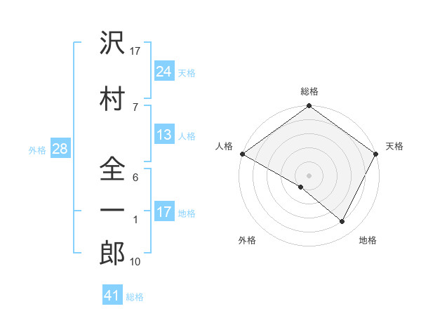 沢村 全一郎さんを姓名の画数から五運を鑑定