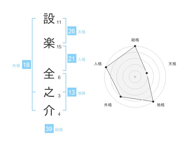 設楽 全之介さんを姓名の画数から五運を鑑定