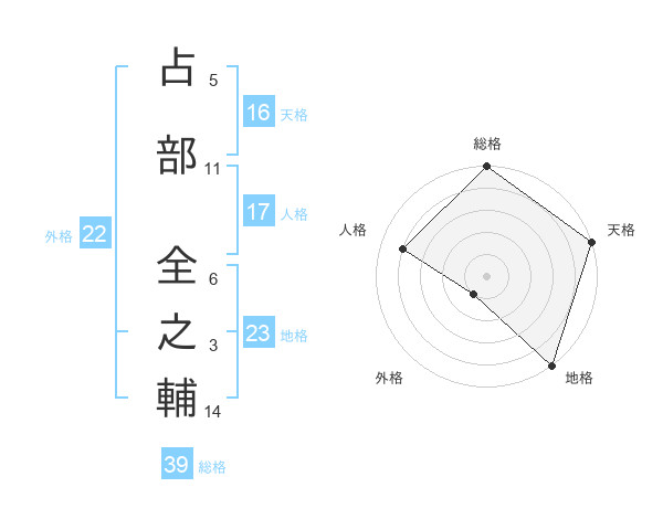 占部 全之輔さんを姓名の画数から五運を鑑定