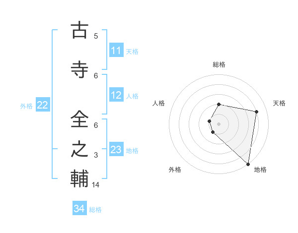 古寺 全之輔さんの総格は34画の2点!