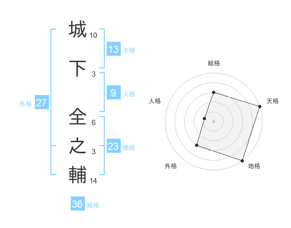 城下 全之輔さんを姓名の画数から五運を鑑定