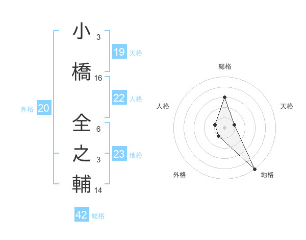 小橋 全之輔さんを姓名の画数から五運を鑑定