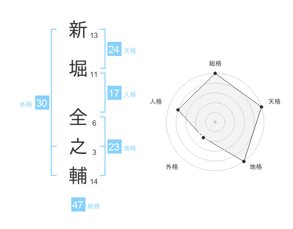 新堀 全之輔さんを姓名の画数から五運を鑑定