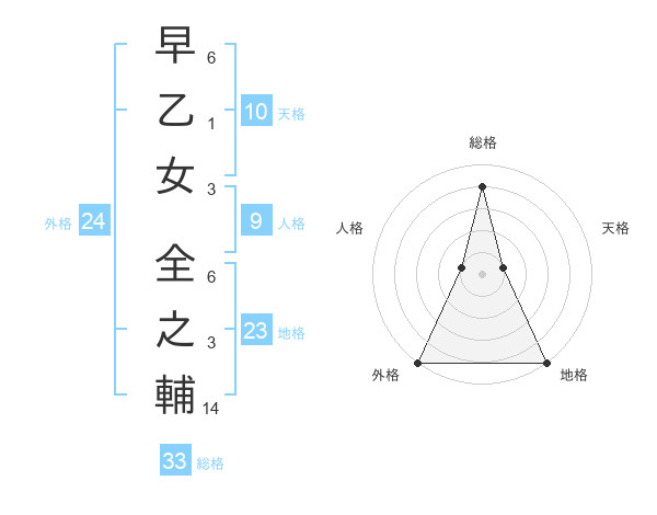 早乙女 全之輔さんの総格は33画の4点!