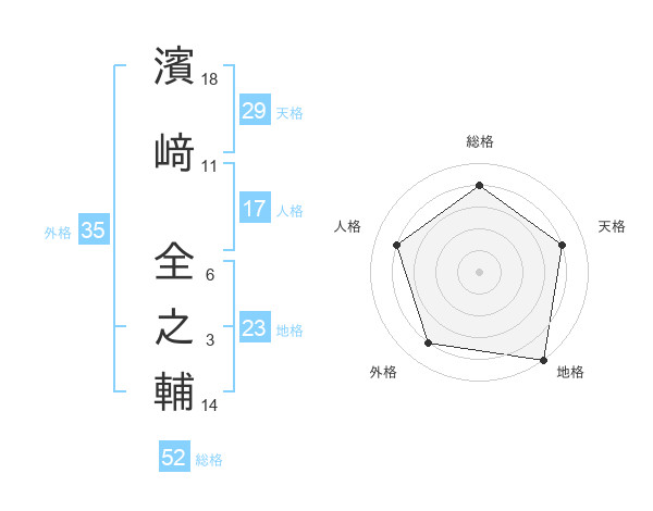 濱﨑 全之輔さんの総格は52画の4点!