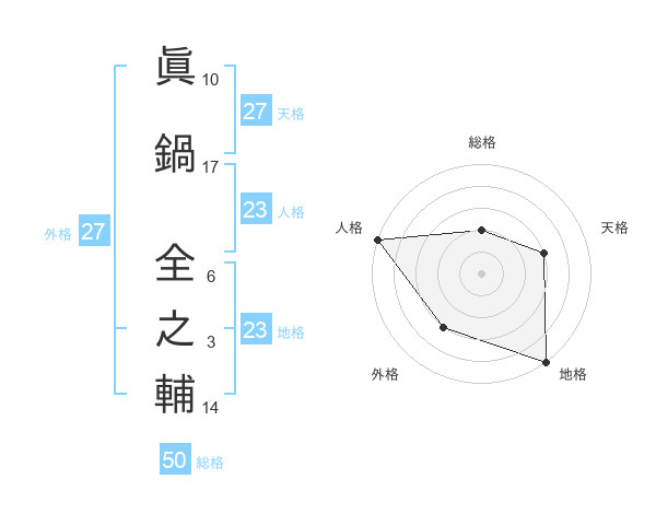 眞鍋 全之輔さんの総格は50画の2点!