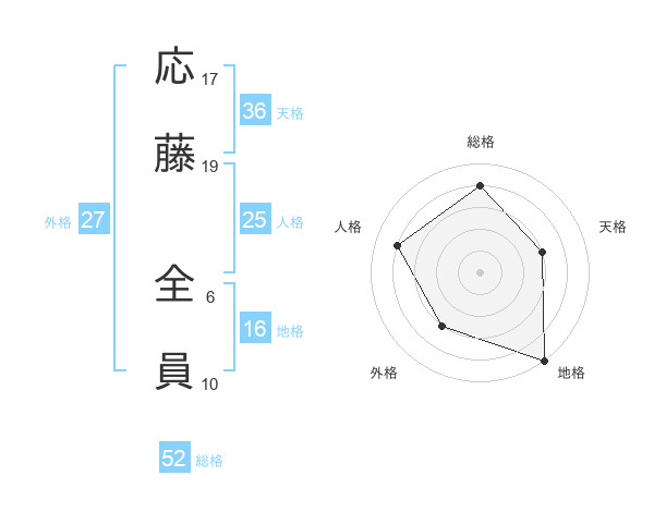 応藤 全員さんを姓名の画数から五運を鑑定