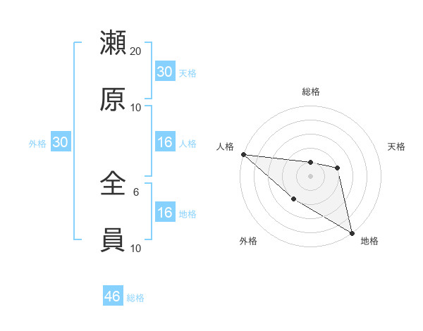 瀬原 全員さんの総格は46画の1点!