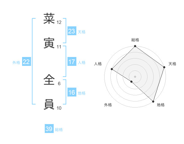 菜寅 全員さんの総格は39画の5点!