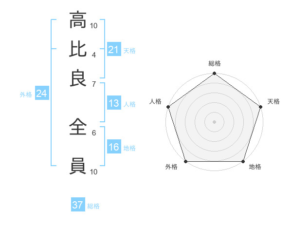 高比良 全員さんの天格は21画の5点!