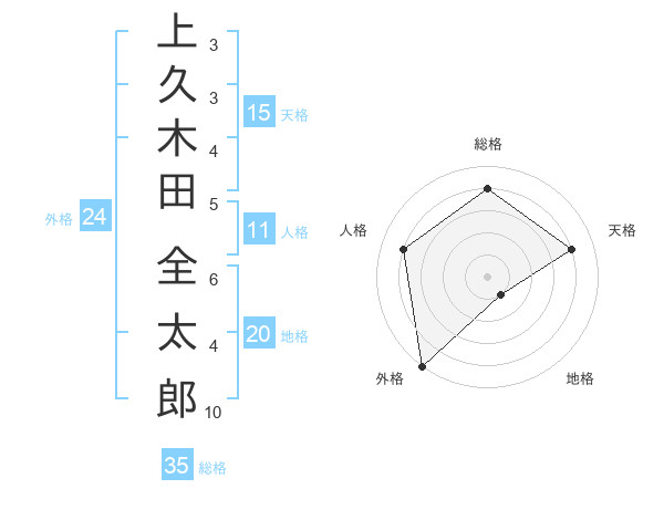 上久木田 全太郎さんを姓名の画数から五運を鑑定