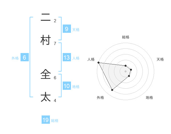二村 全太さんの地格は10画の1点!