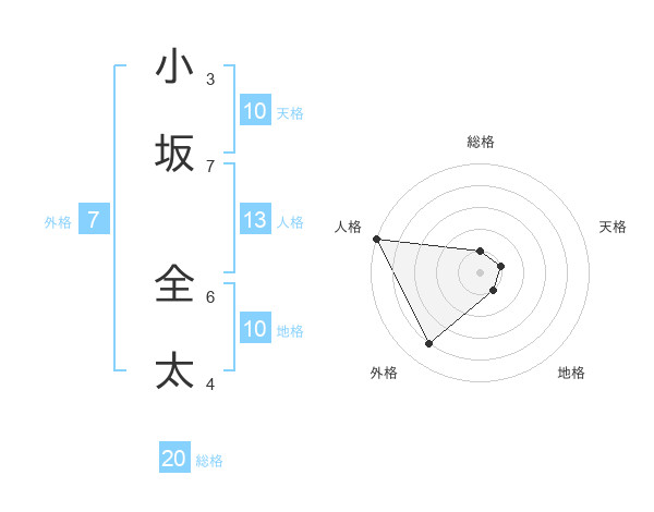小坂 全太さんの地格は10画の1点!