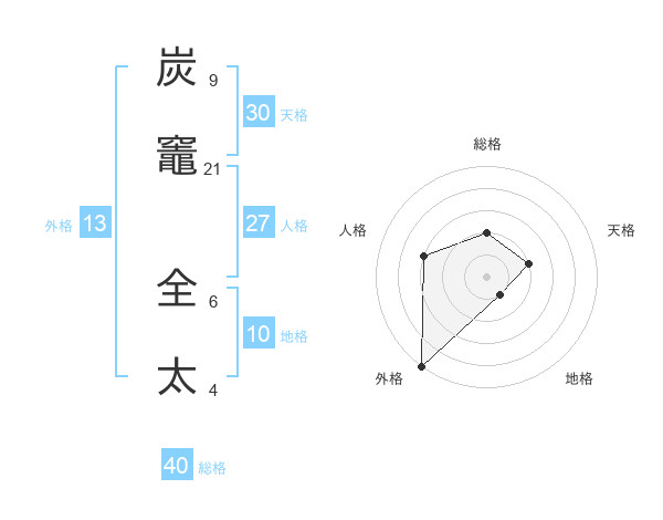 炭竈 全太さんの総格は40画の2点!