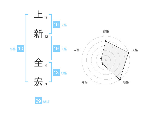 上新 全宏さんの地格は13画の5点!
