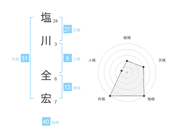 塩川 全宏さんを姓名の画数から五運を鑑定