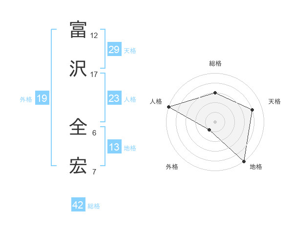 富沢 全宏さんの総格は42画の3点!