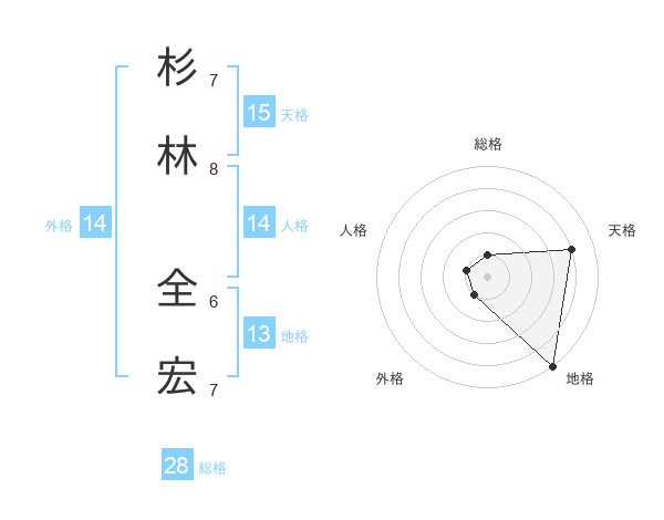 杉林 全宏さんを姓名の画数から五運を鑑定
