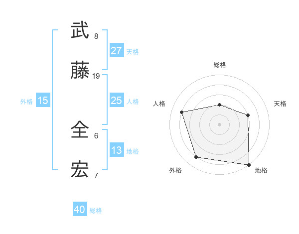 武藤 全宏さんを姓名の画数から五運を鑑定