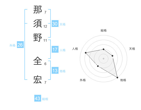 那須野 全宏さんの天格は30画の2点!