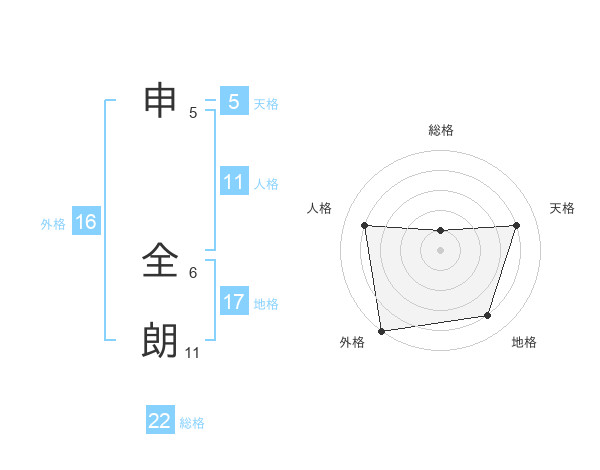 申 全朗さんを姓名の画数から五運を鑑定