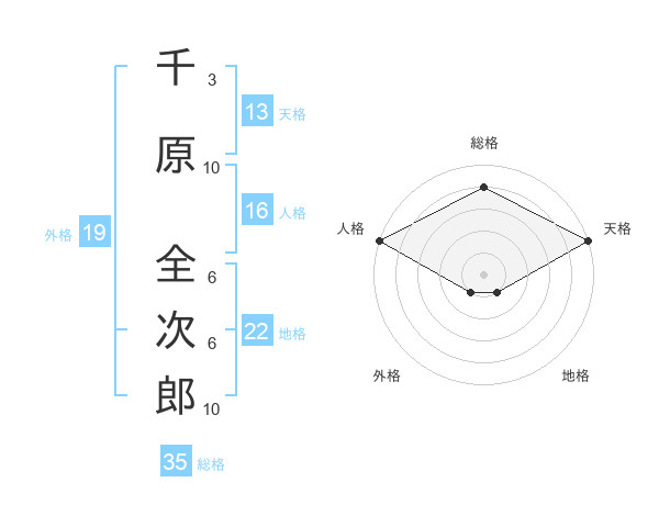千原 全次郎さんの地格は22画の1点!