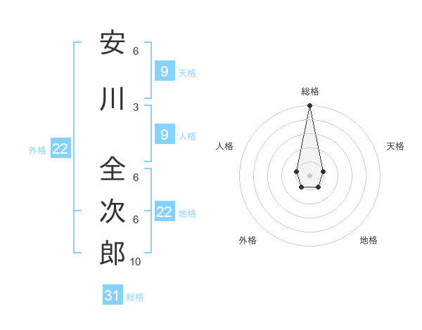 安川 全次郎さんを姓名の画数から五運を鑑定