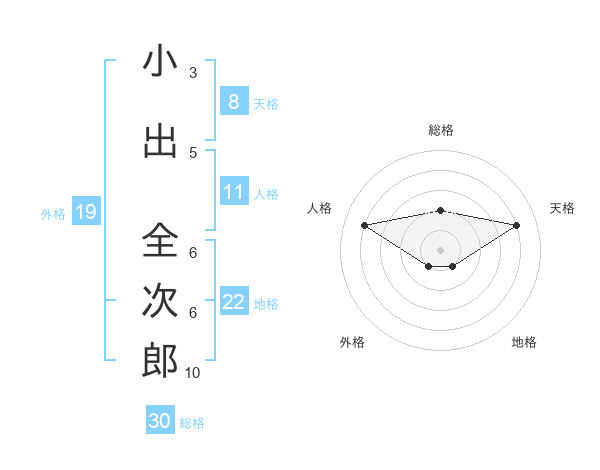 小出 全次郎さんの総格は30画の2点!