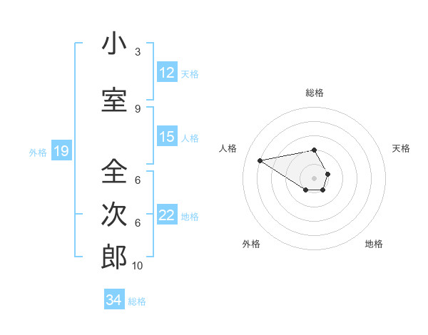 小室 全次郎さんを姓名の画数から五運を鑑定