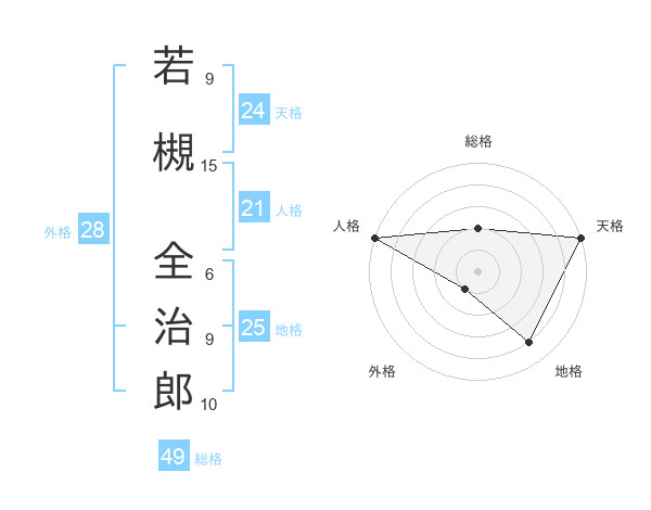 若槻 全治郎さんを姓名の画数から五運を鑑定