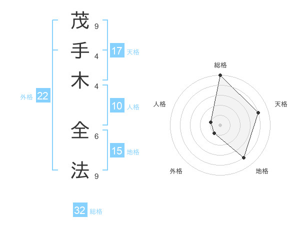 茂手木 全法さんの総格は32画の5点!