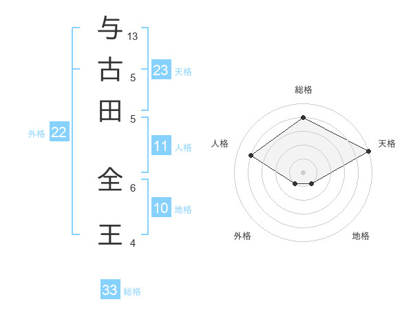 与古田 全王さんの天格は23画の5点!