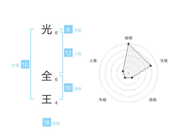 光 全王さんの総格は16画の5点!