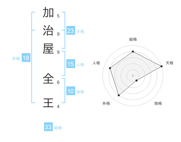 加治屋 全王さんを姓名の画数から五運を鑑定