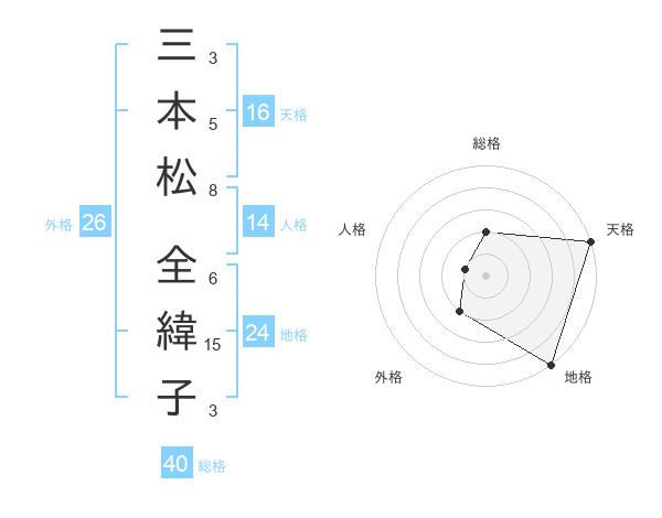 三本松 全緯子さんの地格は24画の5点!