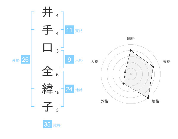 井手口 全緯子さんの総格は35画の4点!