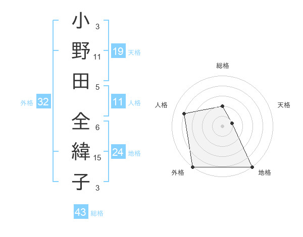 小野田 全緯子さんを姓名の画数から五運を鑑定