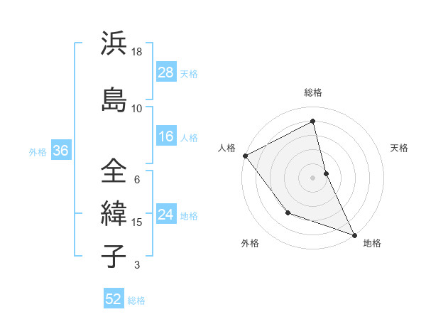 浜島 全緯子さんの外格は36画の3点!