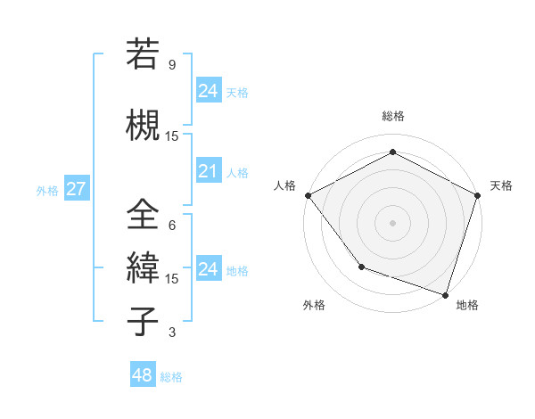 若槻 全緯子さんを姓名の画数から五運を鑑定