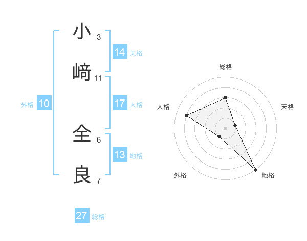 小﨑 全良さんの総格は27画の3点!