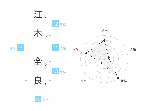 江本 全良さんの総格は25画の4点!