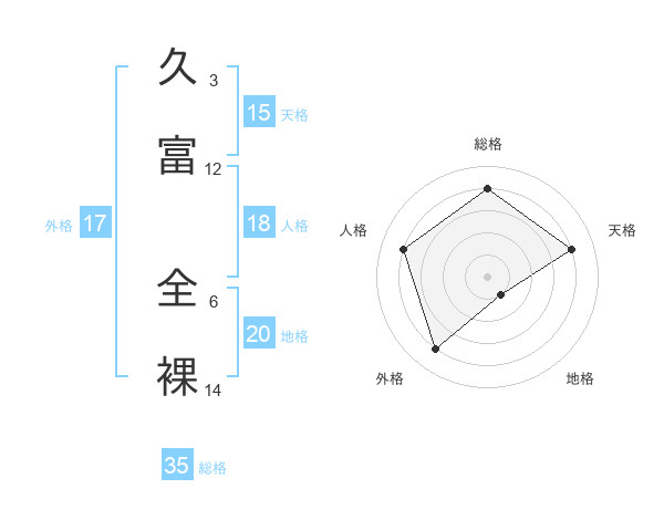 久富 全裸さんの地格は20画の1点!