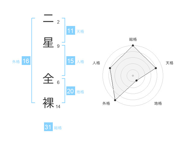 二星 全裸さんの地格は20画の1点!