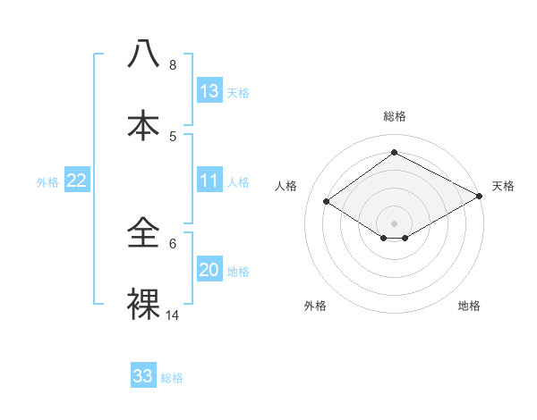 八本 全裸さんの天格は13画の5点!