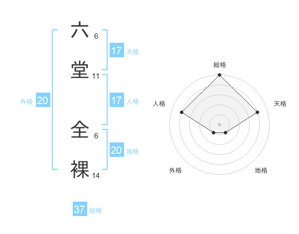六堂 全裸さんの地格は20画の1点!