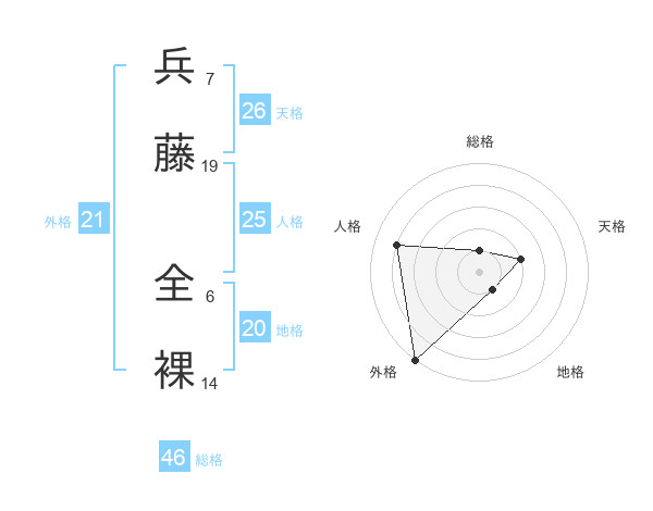 兵藤 全裸さんを姓名の画数から五運を鑑定
