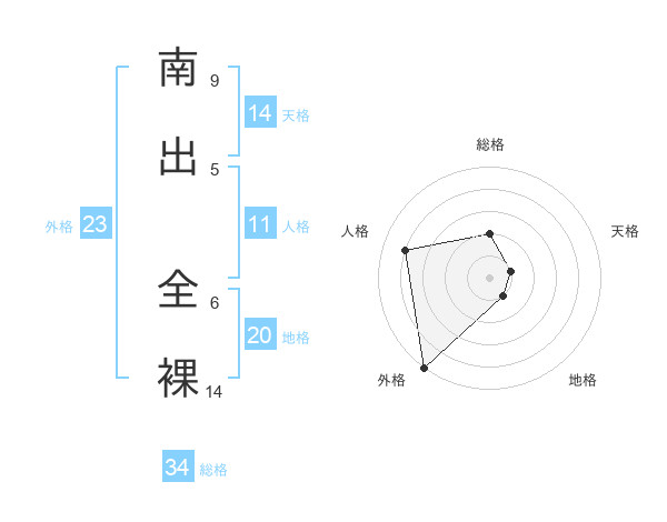 南出 全裸さんの地格は20画の1点!