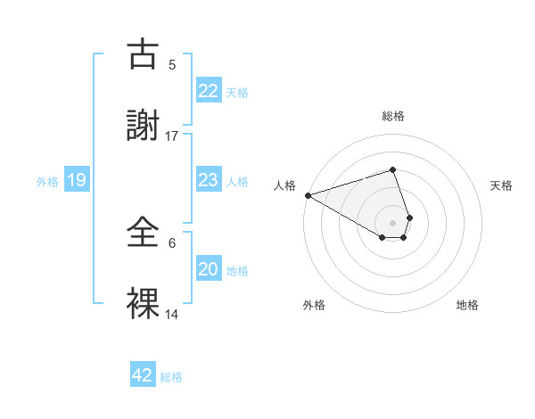 古謝 全裸さんの地格は20画の1点!