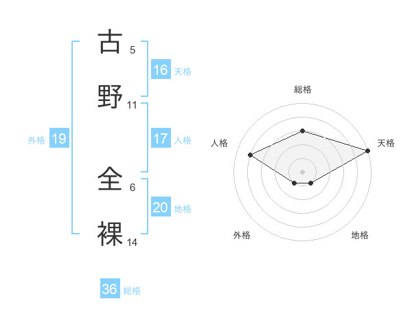 古野 全裸さんの地格は20画の1点!