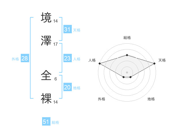 境澤 全裸さんの地格は20画の1点!